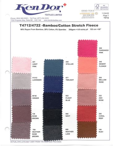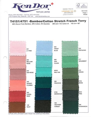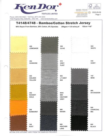 Jersey and French Terry Champion!  Sporty Luxury.  66% Bamboo/28% Cotton/6% Spandex