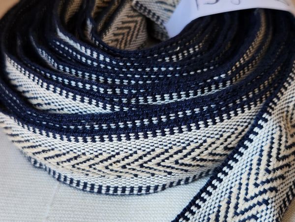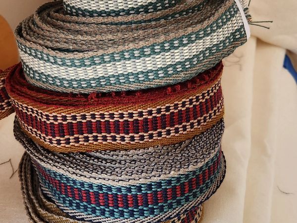 200 yd minimum.  1/4" to 2.5" width in twill or plain weave.   Hemp, flax, cotton, wool and of course, Made in the USA by Tuscarora Mills.