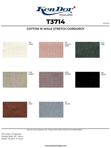 Cotton/Spandex 16 Wale Corduroy T3417