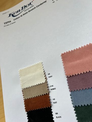 Premium bottomweight stretch cord.    All colors currently in stock.  330 GSM!   97% Cotton/3% Spandex